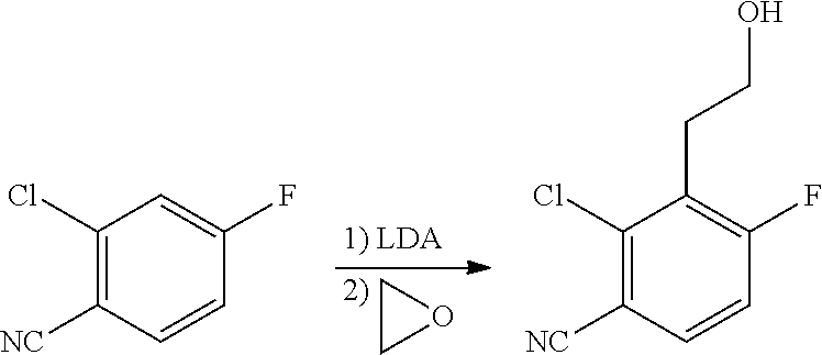 - PXRSFLONAKCCKS-UHFFFAOYSA-N C1CO1.[C-]#[N+]C1=C(Cl)C(CCO)=C(F)C=C1.[C-]#[N+]C1=C(Cl)C=C(F)C=C1 Chemical compound C1CO1.[C-]#[N+]C1=C(Cl)C(CCO)=C(F)C=C1.[C-]#[N+]C1=C(Cl)C=C(F)C=C1 PXRSFLONAKCCKS-UHFFFAOYSA-N 0.000 description 1