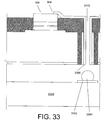 FIG. 33 shows a simplified cutaway view of a portion of an example alternative chip implementation, similar to that of FIG. 23 except the void remaining after metalization is not filled;