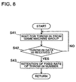 FIG. 7 is a flowchart showing the flow of operation of game machines. The procedure shown in this flowchart is performed concurrently with the subroutine of the game machines 2 shown in FIG. 6.