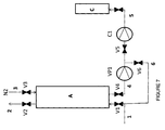 Once vessel A is repressurized, the feed step is recommenced by closing valve V3 and opening valves V1 and V2.
