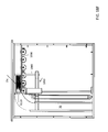 - FIG. 10 shows (A) the inside of the front face of the shuffling compartment; (B) a partial cross-section view of the shuffling compartment and associated forcers; and (C) the inside of the rear face of the shuffling compartment;