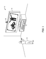 FIG. 1 illustrates one embodiment of a tracking system with a user interacting with an application.