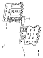 Accordingly, in some embodiments, a support member, such as a dummy wafer, may be inserted into the shell 405 at a location where a real wafer having conductive elements is not inserted. One such embodiment is illustrated in FIG. 4E, which shows the same view as FIG. 4D, with the addition of a dummy wafer 470 installed adjacent to the wafer half 414Y. In this example, the dummy wafer 470 has one or more tabs 470X adapted to be inserted into the recess 456X of the portion 462 of the cover 420. Once inserted into the recess 456X. the tabs 470X may provide forces that cancel out the spring forces generated by the beams of the wafer half 414Y, thereby preventing the portion 462 from bending into the slot 429. The dummy wafer may additionally include tabs 470 adapted to be inserted into a recess formed in another portion of the cover 420 (not shown) to prevent that other portion from bending.