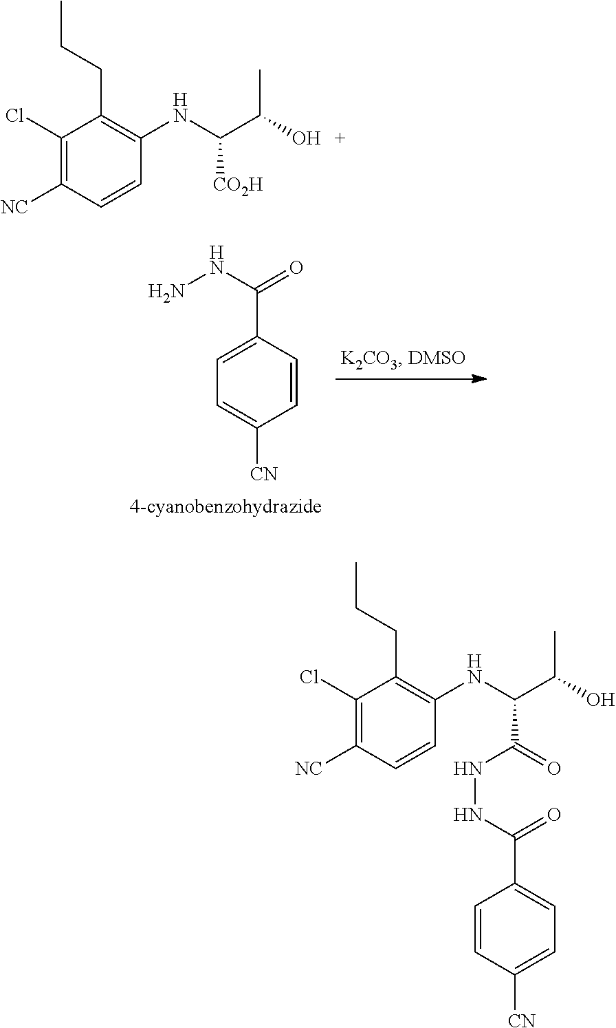 - SFPBEIWNCKNTPF-NYRSQKAISA-N N#CC1=CC=C(C(=O)CN)C=C1.[C-]#[N+]C1=C(Cl)C(CCC)=C(C[C@@H](C(=O)NNC(=O)C2=CC=C(C#N)C=C2)[C@H](C)O)C=C1.[C-]#[N+]C1=C(Cl)C(CCC)=C(C[C@@H](C(=O)O)[C@H](C)O)C=C1 Chemical compound N#CC1=CC=C(C(=O)CN)C=C1.[C-]#[N+]C1=C(Cl)C(CCC)=C(C[C@@H](C(=O)NNC(=O)C2=CC=C(C#N)C=C2)[C@H](C)O)C=C1.[C-]#[N+]C1=C(Cl)C(CCC)=C(C[C@@H](C(=O)O)[C@H](C)O)C=C1 SFPBEIWNCKNTPF-NYRSQKAISA-N 0.000 description 1
