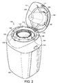 FIG. 2 is a perspective view of the waste storage device of FIG. 1, with the lid in an open configuration;