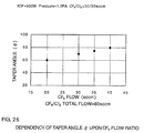 FIG. 25 is a characteristic view of CF4 flow rate versus taper angle θ (example 7);
