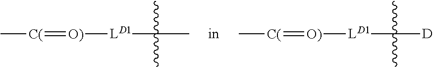 LD is —RL1—C(═O)—XD-MD1-YD-MD2-ZD-MD3-QD-MD4- with MD4 directly connected to D, in which