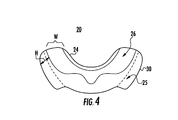 FIGS. 2 through 4 illustrate dental appliance 20 in accordance with the teachings of the present invention. Dental appliance 20 can be formed as a mouthguard or dental splint. Dental appliance 20 is formed of base 22. Lingual wall 24 and buccal wall 25 extend from base 22. Channel 26 is formed between lingual wall 24 and buccal wall 25. Channel 26 has a width W, which is less than width W2 of teeth 28. For example, channel 26 can have a width in the range of about 1 mm to about 12 mm.