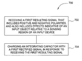 - the circuit is operable to output a rectified signal to the first integrating capacitor indicative of the input object relative to a sensing region.