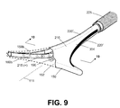 - FIG. 8C is a schematic view of subsequent steps of the method, including, (i) actuating the internal frame to move the collapsed thin-wall dielectric structure to an expanded configuration, (ii) inflating a cervical-scaling balloon carried on the introducer sleeve, and (iii) actuating gas flows and applying RF energy to contemporaneously ionize the gas in the interior chamber and cause capacitive coupling of current through the thin-wall dielectric structure to cause ohmic heating in the engaged tissue indicated by current flow paths.