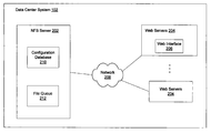 - the data center system 102 may comprise a network file system (NFS) server 202 and one or more web servers 204 , each of which may comprise a web interface 206 , coupled in communication via a network 208 .