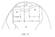 As may also be appreciated by reference to FIG. 17, the center of the patella 70 is lateral to the midline of the knee. Specifically, in the Figure the medial-lateral distance between the most medial portion of the distal end of the femur 32 and the center of the patella 70 is represented by Y. As may be seen, the corresponding medial-lateral distance between the most lateral portion of the distal end of the femur 32 and the center of the patella 70 is approximately 75% or less (73% in the Figure) of Y. In some embodiments of the invention, the femoral component 12 may mimic the actual physical structure of the knee represented in FIG. 17.