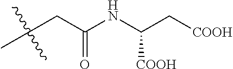 “Dicarboxyalkylaminocarbonylalkyl” means a radical -(alkylene)-CONHR where R is alkyl, as defined herein, substituted with two carboxy groups, e.g., —CH2CONHCH(COOH)(CH2COOH), —CH2CONHCH(CH2COOH)2, —C(CH3)2—CONHCH(COOH)(CH2COOH),