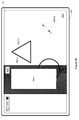 FIGS. 5C and 5G illustrate displaying a second user interface 5010 (e.g., an object palette 5022 with triangle, rectangle, circle, and star objects 5020) simultaneously with the first user interface 5001 in response to detecting a multi-finger pinch gesture 5008 (from 5008-a in FIG. 5C to 5008- d in FIG. 5G) when the magnification level is a predefined magnification level (e.g., 100%) for requesting the second user interface 5010 with the multi-finger pinch gesture. An object (e.g., star 5020-4) is inserted into the first user interface 5001 in response to detecting a gesture (e.g., a tap and drag gesture 5024) on the object in the object palette