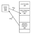 When a given processor is to switch execution from a first process to a second process, it is said to switch context. That is, it switches context from the first process's context to the second process's context. The computer code and the data of the first process are transferred from the local memory of the processor to the system memory 104. Then, the code and the data of the second process are transferred from the system memory 104 to the local memory. Thereafter, the processor can begin executing the second process as appropriate.