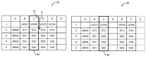 FIG. 17 shows a table into which rows may be inserted using hold and flick gestures. A user may select a desired row by making a hold gesture on a particular row header (e.g., one of the numbers 1, 2, 3, 4, . . . in table 80 of FIG. 17).