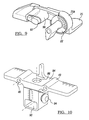 - the extension portion 12 has a depending pin 32 which interfaces with the arcuate slot 60 defined in a first rotating member 61 .