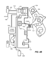 As is best illustrated in FIG. 4B, when the handle 104 is first moved to the unreleased ON configuration, the leaf spring 132 is flexed and the attached moveable secondary electrical contact 121M is urged into direct contact with the stationary secondary contact 1215. This closes the path between the conduit 133 and conduit 134 and provides power to the power supply 123 of the electronic circuit 118 and various electrical components (e.g., the unlock actuator 126 and the maglatch actuator 142).