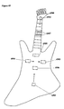 FIG. 35 shows an example electric guitar implementation in accordance with the invention based on a Gibson model ES-335 guitar; the invention's enhancements shown can be added on as modules, added collectively, or built-in;