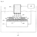 The electrons of the tunneling current 465 that have passed through the insulating layer 420 from the conductive substrate 410 may be bonded with the metal ions 455 on the surface of the insulating layer 420 within the electrolyte solution 430. The metal ions 455 may be bonded with the electrons to be reduced to the metal atoms 470 on the insulating layer 420. The reduced metal atoms 470 may be stacked on the insulating layer 420. Although not shown, some of the electrons of the tunneling current 465 that have passed through the insulating layer 420 from the conductive substrate 410 may reach the source electrode layer 422 or the drain electrode layer 424. In this case, a predetermined voltage may be externally applied to the source electrode layer 422 and the drain electrode layer 424, so that elections that do not participating in the reduction reaction of the metal ions 455 may be discharged outside from the conductive substrate 410.