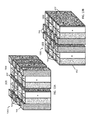 - FIG. 8A depicts an exemplary flux concentrating device comprising three magnetic structures like those of FIG. 7A except the magnets in the middle structure are each rotated 180° compared to the magnets in the two outer most structures.