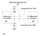 Although a single differential transmitter and differential receiver are depicted, those circuit elements may be part of a larger system that includes numerous such receivers and transmitters. Also, while differential signaling link 105 is depicted as a unidirectional path (i.e., signals propagating thereon from differential transmitter 101 to differential receiver 103), the differential signaling link may additionally be coupled to counterpart differential transmitter/receiver components to enable signaling in the opposite direction.