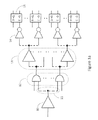 FIGS. 6 a, 6 b, and 6 c are logical diagrams of examples of clock distribution on an IC utilizing tunable inverters,