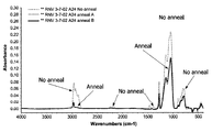 FIG. 1 shows infrared spectra of a film of the present invention using thermally labile group admixed therewith before and after a post anneal indicating the elimination of the thermally labile group;
