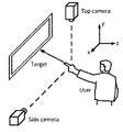 - the present system and method also provides a model for pointing cursor determination on a screen, and evaluating the pointing direction and its error by measuring the difference between the projected positions and the expected positions on the screen.