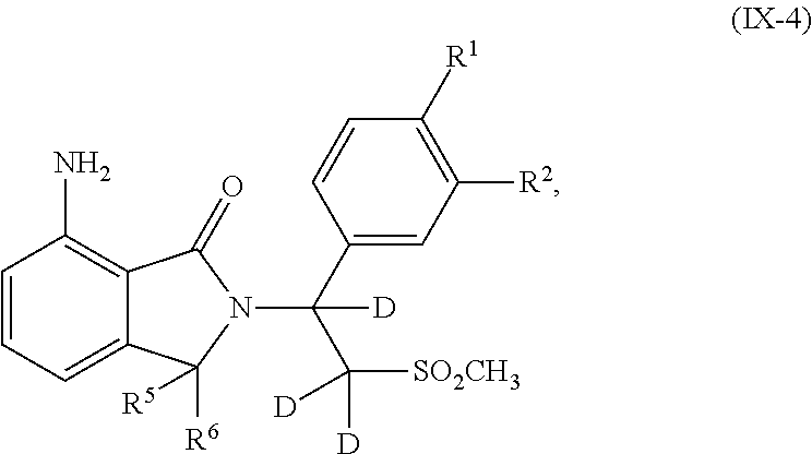 - MVOYKGMFKPXUST-ATTIFQRTSA-N [2H]C([2H])([C@]([2H])(C1=CC(C)=C(OC)C=C1)N1C(=O)C2=CC=CC(NC(C)=O)=C2C1=O)S(C)(=O)=O.[2H]CCC.[2H]CCC.[H]C([H])([C@]([2H])(C1=CC(C)=C(OC)C=C1)N1C(=O)C2=CC=CC(NC(C)=O)=C2C1=O)S(C)(=O)=O.[H]CCC.[H][C@@](C1=CC(C)=C(OC)C=C1)(N1C(=O)C2=CC=CC(NC(C)=O)=C2C1=O)C([2H])([2H])S(C)(=O)=O Chemical compound [2H]C([2H])([C@]([2H])(C1=CC(C)=C(OC)C=C1)N1C(=O)C2=CC=CC(NC(C)=O)=C2C1=O)S(C)(=O)=O.[2H]CCC.[2H]CCC.[H]C([H])([C@]([2H])(C1=CC(C)=C(OC)C=C1)N1C(=O)C2=CC=CC(NC(C)=O)=C2C1=O)S(C)(=O)=O.[H]CCC.[H][C@@](C1=CC(C)=C(OC)C=C1)(N1C(=O)C2=CC=CC(NC(C)=O)=C2C1=O)C([2H])([2H])S(C)(=O)=O MVOYKGMFKPXUST-ATTIFQRTSA-N 0.000 description 1