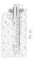 - FIG. 21 is a left side view of the probe of FIG. 15 in longitudinal vertical cross section and inserted into tissue with cutter tube advanced to close a side aperture and with a sample retraction straw with internal indicator tube retracted exposing internal vacuum holes partially aligned with external vacuum holes.