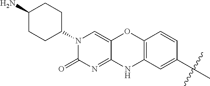 - AMGJSDUOOPHLOW-UHFFFAOYSA-N CC(C)(C)C1=CC2=C(C=C1)OC1=CN(C3CCC(N)CC3)C(=O)N=C1N2 Chemical compound CC(C)(C)C1=CC2=C(C=C1)OC1=CN(C3CCC(N)CC3)C(=O)N=C1N2 AMGJSDUOOPHLOW-UHFFFAOYSA-N 0.000 description 42