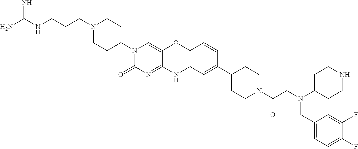 - JZNGORWRRRPJNZ-OYKVQYDMSA-N N=C(N)NCCCN1CCCC(N2C=C3OC4=C(C=C(C(=O)N5CCC[C@H](N)C5)C=C4)NC3=NC2=O)CC1 Chemical compound N=C(N)NCCCN1CCCC(N2C=C3OC4=C(C=C(C(=O)N5CCC[C@H](N)C5)C=C4)NC3=NC2=O)CC1 JZNGORWRRRPJNZ-OYKVQYDMSA-N 0.000 description 3
