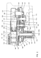 “A clutch comprises an electromagnetic clutch which serves to transmit torque and interrupt torque transmission by passage and interruption of current to an electromagnet.”