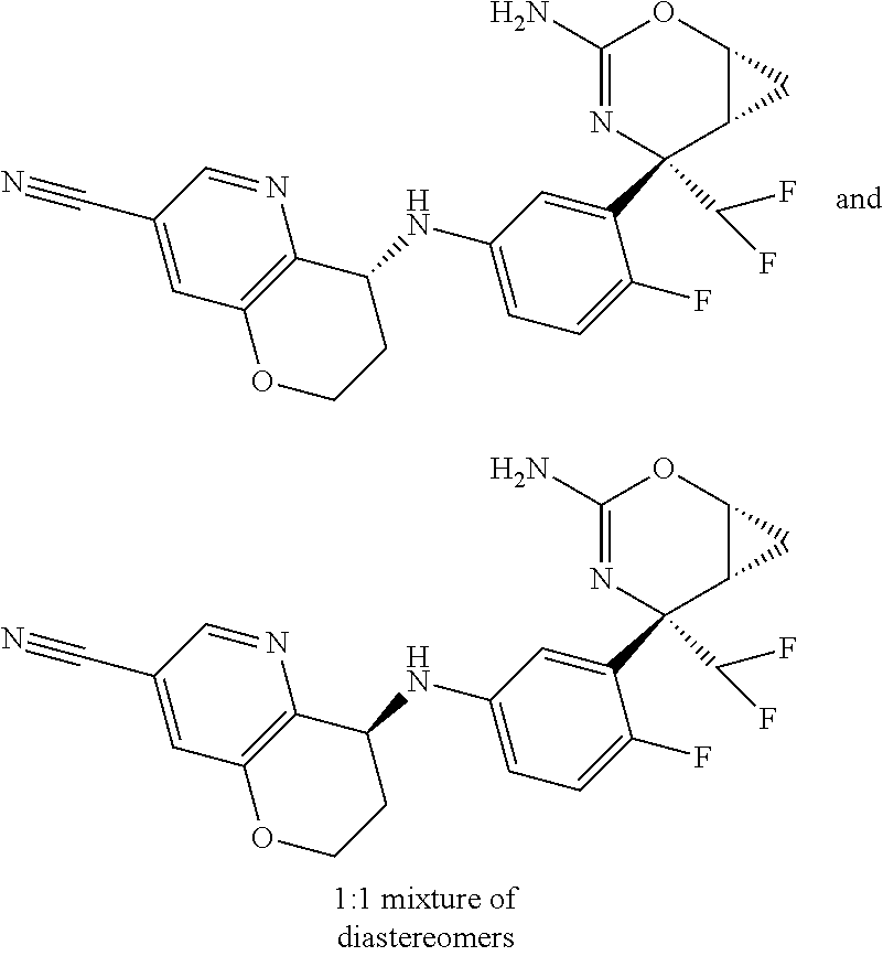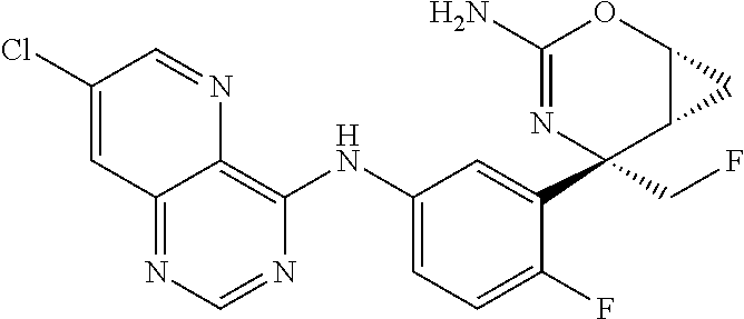 - N-(3-((1R,5R,6R)-3-amino-5-methyl-2-oxa-4-azabicyclo[4.1.0]hept-3-en-5-yl)-4-fluorophenyl)-3-methoxy-1,7-naphthyridin-8-amine or