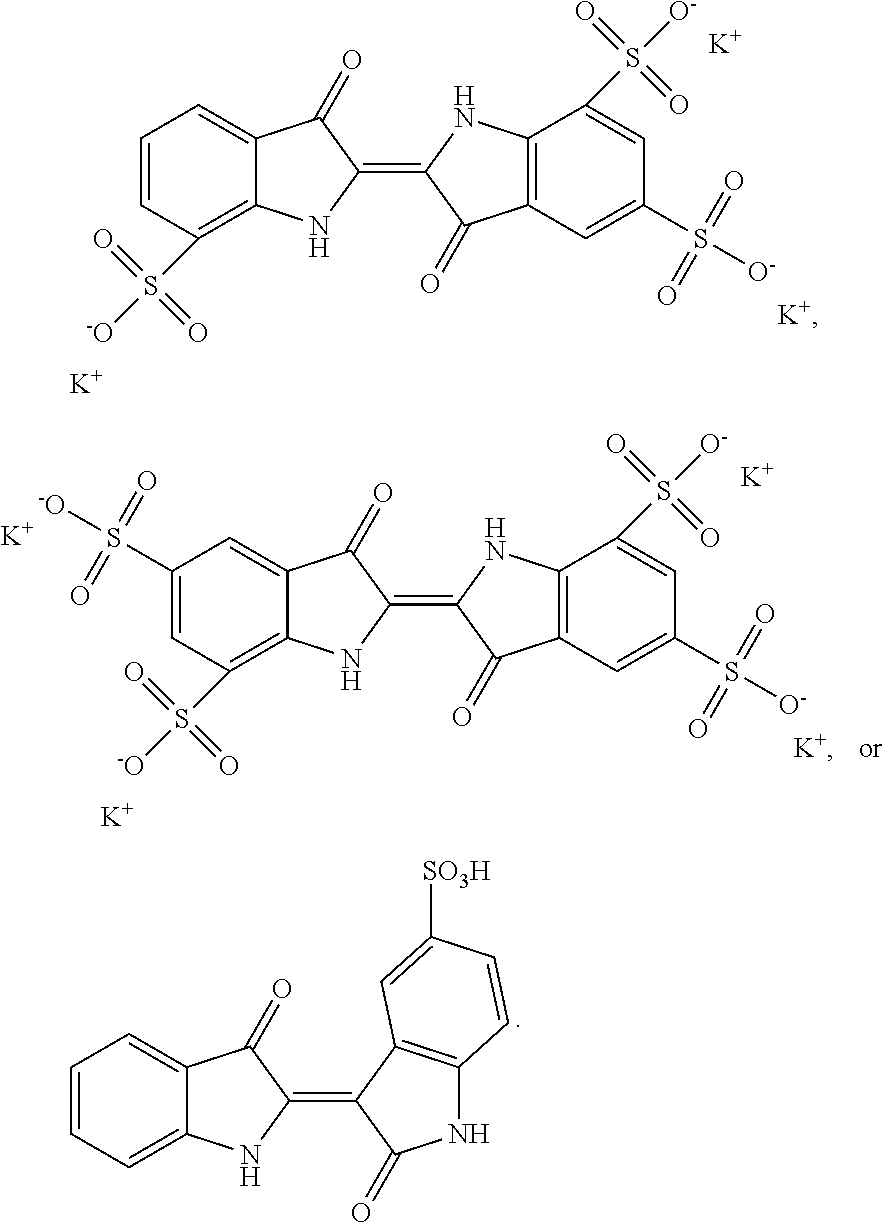 - XKNULDBTSYGQKP-RHKJIIPNSA-J O=C1C2=C(C/C1=C1/NC3=C(S(=O)(=O)O)C=C(S(=O)(=O)O)C=C3C1=O)C(S(=O)(=O)[O-])=CC(S(=O)(=O)[O-])=C2.O=C1C2=C(C/C1=C1/NC3=C(S(=O)(=O)O)C=CC=C3C1=O)C(S(=O)(=O)[O-])=CC(S(=O)(=O)[O-])=C2.O=C1C2=CC=CC=C2N/C1=C1\C(=O)NC2=C1C=C(S(=O)(=O)O)C=C2.[K+].[K+].[K+].[K+].[K+] Chemical compound O=C1C2=C(C/C1=C1/NC3=C(S(=O)(=O)O)C=C(S(=O)(=O)O)C=C3C1=O)C(S(=O)(=O)[O-])=CC(S(=O)(=O)[O-])=C2.O=C1C2=C(C/C1=C1/NC3=C(S(=O)(=O)O)C=CC=C3C1=O)C(S(=O)(=O)[O-])=CC(S(=O)(=O)[O-])=C2.O=C1C2=CC=CC=C2N/C1=C1\C(=O)NC2=C1C=C(S(=O)(=O)O)C=C2.[K+].[K+].[K+].[K+].[K+] XKNULDBTSYGQKP-RHKJIIPNSA-J 0.000 description 1