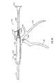 FIG. 39 depicts a side view of a portion of one embodiment of tensioning tool 250, which may be used to apply tension to conformable ligature 14. As shown in FIG. 39, tensioning tool 250 includes tool body 266 for engaging conformable ligature 14, longitudinal member 260 for advancement in tool body 266, and distal end (such as distal end 154 depicted in FIGS. 14, 17, and 20) for engagement with blocking body 120. As shown in FIG. 39, tool body 266 includes attachment point 274 (with flange 258) for connection to ligature 14, fixed handle 254, movable handle 252 for rotation about axis 256, return spring 262, catch mechanism 264, return spring adjustment member 270, and spring adjustment member 268.