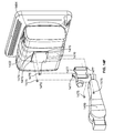 FIG. 14 d is an oblique rear view illustration of one embodiment of a display 1404 with an attached bracket 1470, depicting the insertion of a monitor 1402 into the bracket 1470 for “backpack mounting”. The monitor 1402 is slid into the bracket 1470 from either side of said bracket 1470 and is then secured to the bracket 1470 via four mounting holes 1473 (only two are visible in FIG. 14 d) located at the bottom of said bracket. The monitor 1402 can be slid into the bracket 1470 from either side of the bracket 1470 and can be oriented to face toward either the left or right side of the display 1404.