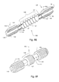 As shown best in FIGS. 8A and 8B, each member 122 has a cylindrical body 128 and its female connector 115 has an end face 127. Male connector 114B is used to couple bellows 14D to the second member 122 by engaging its female connector or coupling 115 integrally formed as its proximate end portion as best seen in FIG. 8C. A central longitudinal cylindrical cavity 124, as seen best in FIGS. 8C and 8D, extends longitudinally into body 128 of members 122, 122 through the end face 127. Passing axially through body 128 is a cannulation 140 to allow passage of guide wire 34. Cavity 124 has an internal diameter and length to accommodate male connectors 114A and 114B. To allow for coupling to occur, cavity 124 has a circular recess 126 set radially around its inner wall. It is positioned and extends substantially along the circumference of the wall of the cavity opposite end face 127. Collars 119A and 119B of rings 118A and 118B, respectively, will snap into recesses 126, 126 when male connectors 114A and 114B are inserted forcefully into cavities 124, 124. Upon insertion of male connectors 114A, 114B into cavities 124, 124, the internal wall of these cavities will maintain the sections of the spring collets compressed together until collars 119A, 119B reach recesses 126, 126. Thereat, rings 118A, 118B seat themselves into recesses 126, 126 locking together the bellows 14D and the two threaded members 122, 122.