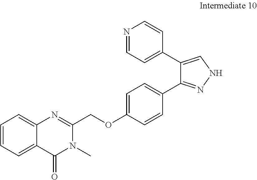 - YWGMJOFUWHMUTC-BJUDXGSMSA-N 3-methyl-2-[[4-(1-methyl-4-pyridin-4-ylpyrazol-3-yl)phenoxy]methyl]quinazolin-4-one Chemical compound N=1C2=CC=CC=C2C(=O)N(C)C=1COC(C=C1)=CC=C1C1=NN([11CH3])C=C1C1=CC=NC=C1 YWGMJOFUWHMUTC-BJUDXGSMSA-N 0.000 claims description 6