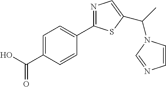 - BAAAADCGPOVGPR-UHFFFAOYSA-N CC(C1=CN=C(C2=CC=C(C(=O)O)C=C2)S1)N1C=CN=C1 Chemical compound CC(C1=CN=C(C2=CC=C(C(=O)O)C=C2)S1)N1C=CN=C1 BAAAADCGPOVGPR-UHFFFAOYSA-N 0.000 description 2