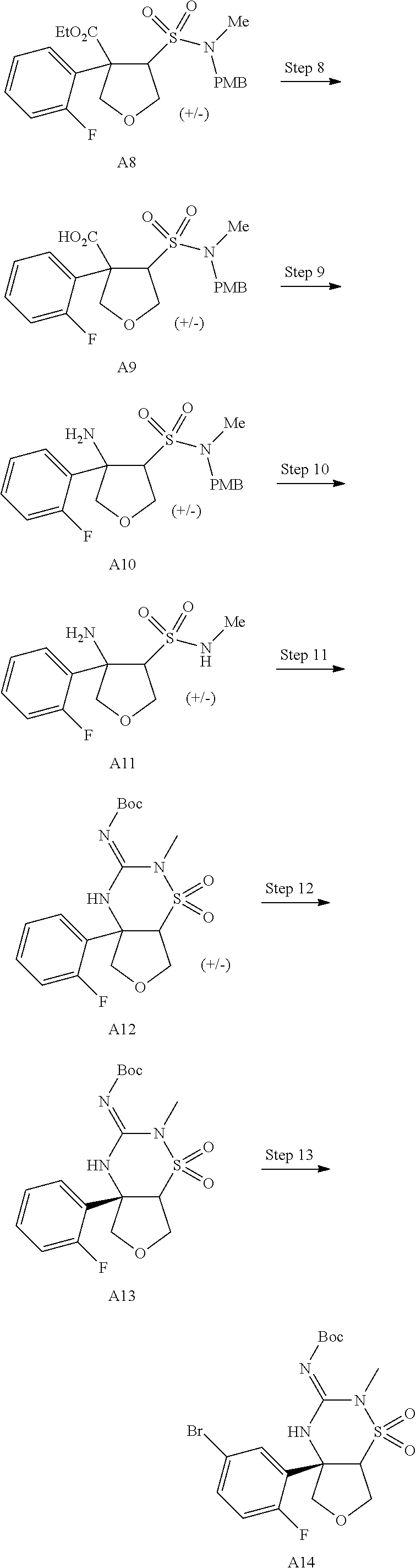 - BHFBHUFHKLHHLP-LPHOPBHVSA-N CN1C(=N)N[C@]2(C3=CC(CC(=O)C4=NC=C(C(F)F)N=C4)=CC=C3F)COC[C@@H]2S1(=O)=O Chemical compound CN1C(=N)N[C@]2(C3=CC(CC(=O)C4=NC=C(C(F)F)N=C4)=CC=C3F)COC[C@@H]2S1(=O)=O BHFBHUFHKLHHLP-LPHOPBHVSA-N 0.000 description 3