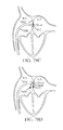 During normal operation, when the pressure in the left atrium exceeds the pressure in the coronary sinus, blood will tend to flow from the left atrium through the stent, and in particular at the outset, through the top portion 70. Blood will flow through the perforated plate 75 and since the flaps 74 are free to flap downward, in the embodiment of FIG. 61, the blood will flow through valve element 73 and on into the coronary sinus. However, the flaps 74 are not free to flow in the opposite direction, toward the left atrium, because their movement is prevented by the perforated plate 75. Other embodiments of check valves or one-way valves may also be used.
