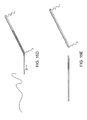 FIG. 13A depicts the use of a splaying mechanism built into the catheter for extending and positioning the support elements around the apex of the heart. FIGS. 13B and 13C illustrates the use of an angular constriction at the distal end of the catheter to splay the support elements.