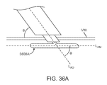 FIG. 36A is a side view of another alternative expanded or deployed configuration of the expandable suture capture component of FIG. 34, wherein the expandable suture capture component is schematically shown within a vessel having a vessel wall VW.