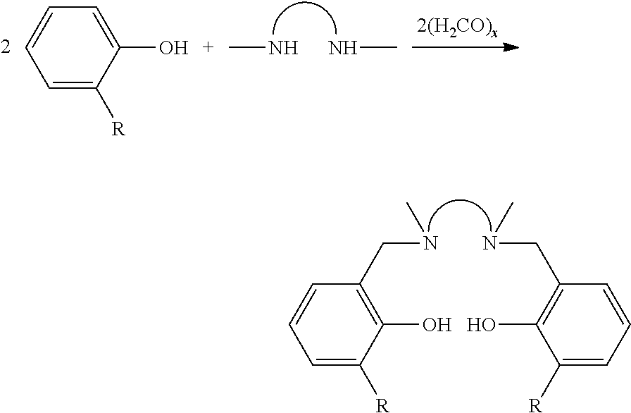 In an embodiment according to the invention, Y is ethylene (—CH2CH2—), 1,2-cyclohexylene, 1,2-phenylene, or 2-benzylene, i.e., the benzylene bridge structure N1—Y—N2 is represented by the formulae: