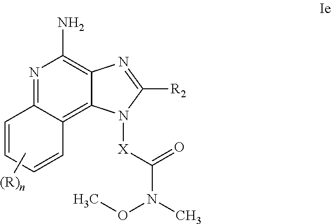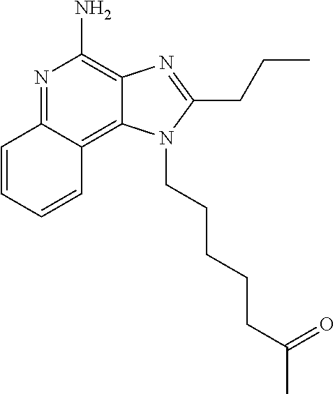 An in vitro human blood cell system is used to assess cytokine induction. Activity is based on the measurement of interferon and tumor necrosis factor (α) (IFN and TNF, respectively) secreted into culture media as described by Testerman et. al. in “Cytokine Induction by the Immunomodulators Imiquimod and S-27609”, Journal of Leukocyte Biology, 58, 365-372 (September, 1995).