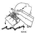 FIGS. 81-83 disclose another process in forming the wristband 514. As shown in FIG. 81, a first shot of injection molded material 592 is injected into a mold and includes a central groove 593 therein and forming a partial assembly. As shown in FIG. 82, the cable assembly 590 is laid into the groove 593 in a partial assembly. As shown in FIG. 83, a second shot of injection molded material is injected into the mold to form the wristband 514.