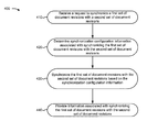 As shown in FIG. 4, process 400 may include receiving a request to synchronize a first set of document revisions with a second set of document revisions (block 410). For example, synchronization device 230 may receive the request to synchronize the first set of document revisions (e.g., associated with a first server device 220) with the second set of document revisions (e.g., associated with a second server device 220). In some implementations, synchronization device 230 may receive the request from client device 210 (e.g., based on a user selection). Additionally, or alternatively, synchronization device 230 may receive information that identifies a date and/or a time for synchronization (e.g., a recurring synchronization), and may automatically perform synchronization based on the identified date and/or time.