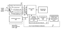 - the classification engine in response to a triggering event, issues multi-flow feedback signaling to the network-traffic static analysis logic.